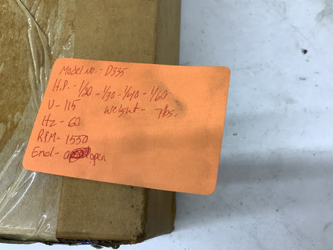 Fasco D335 AC Motor 1/20HP 2.1AMP 115V 60HZ 1550RPM 4Speed AC Motor Return Policy Returns accepted within 30 days. Items sold as is cannot be returned, unless description is in error. Buyer pays return freight. Shipping Policy We ship almost all items with 1 business day of cleared payment. We ship USPS and UPS. We can ship on your account. If you will be shipping freight, please be sure to provide all delivery contact information including a phone number. We will need to know if you have a fork lift or dock.