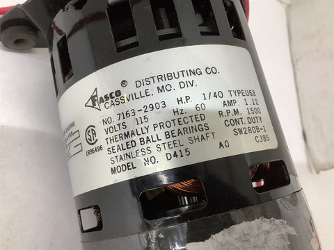Fasco D415 Ac Motor 1/40 Hp 115 V 1800 Rpm 4P 60 Hz Footless Return Policy Returns accepted within 30 days. Items sold as is cannot be returned, unless description is in error. Buyer pays return freight. Shipping Policy We ship almost all items with 1 business day of cleared payment. We ship USPS and UPS. We can ship on your account. If you will be shipping freight, please be sure to provide all delivery contact information including a phone number. We will need to know if you have a fork lift or dock.