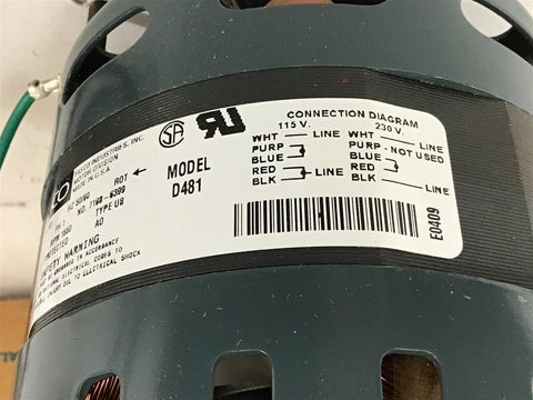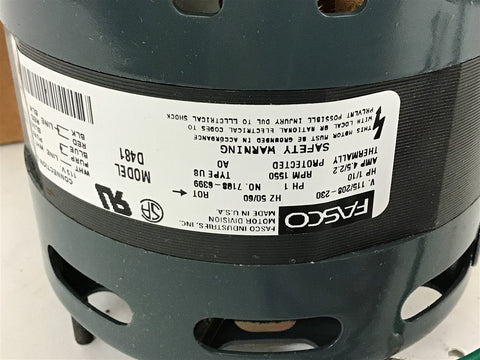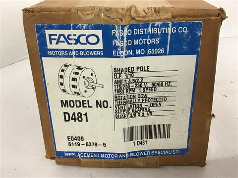 Fasco D481 1/10 HP Shaded Pole Motor 115/208-230 V 1550 Rpm 1 Spd Return Policy Returns accepted within 30 days. Items sold as is cannot be returned, unless description is in error. Buyer pays return freight. Shipping Policy We ship almost all items with 1 business day of cleared payment. We ship USPS and UPS. We can ship on your account. If you will be shipping freight, please be sure to provide all delivery contact information including a phone number. We will need to know if you have a fork lift or dock.