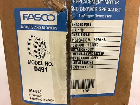 Fasco D491 1/10 HP Shaded Pole Motor 115/208-230 V 1050 Rpm 1 Spd Return Policy Returns accepted within 30 days. Items sold as is cannot be returned, unless description is in error. Buyer pays return freight. Shipping Policy We ship almost all items with 1 business day of cleared payment. We ship USPS and UPS. We can ship on your account. If you will be shipping freight, please be sure to provide all delivery contact information including a phone number. We will need to know if you have a fork lift or dock.