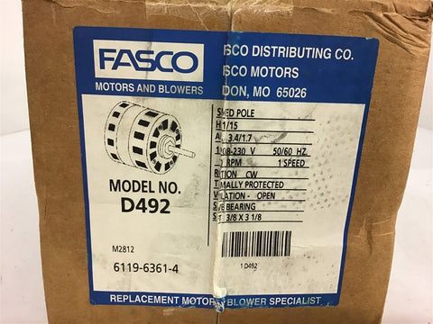 Fasco D492 1/15 HP Shaded Pole Motor 115/208-230 Volts 1050 Rpm Return Policy Returns accepted within 30 days. Items sold as is cannot be returned, unless description is in error. Buyer pays return freight. Shipping Policy We ship almost all items with 1 business day of cleared payment. We ship USPS and UPS. We can ship on your account. If you will be shipping freight, please be sure to provide all delivery contact information including a phone number. We will need to know if you have a fork lift or dock.