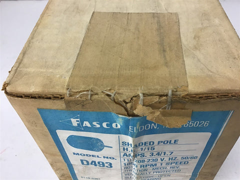 Fasco D493 1/15 HP AC Motor 115/208-230 volts 1050 Rpm 1 Speed Return Policy Returns accepted within 30 days. Items sold as is cannot be returned, unless description is in error. Buyer pays return freight. Shipping Policy We ship almost all items with 1 business day of cleared payment. We ship USPS and UPS. We can ship on your account. If you will be shipping freight, please be sure to provide all delivery contact information including a phone number. We will need to know if you have a fork lift or dock.