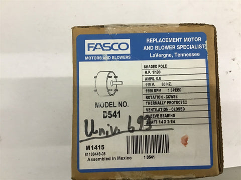 Fasco D541 1/100 Hp Shaded Pole Motor 115 V 1550 Rpm CCWSE 1 Speed