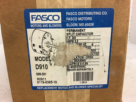 Fasco D910 3/4 Hp blower Motor 1075 rpm 460 volts Return Policy Returns accepted within 30 days. Items sold as is cannot be returned, unless description is in error. Buyer pays return freight. Shipping Policy We ship almost all items with 1 business day of cleared payment. We ship USPS and UPS. We can ship on your account. If you will be shipping freight, please be sure to provide all delivery contact information including a phone number. We will need to know if you have a fork lift or dock.