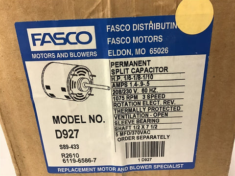 Fasco D927 1/6-1/8-1/10 HP 208-230 Volts 1075 Rpm Blower Motor Return Policy Returns accepted within 30 days. Items sold as is cannot be returned, unless description is in error. Buyer pays return freight. Shipping Policy We ship almost all items with 1 business day of cleared payment. We ship USPS and UPS. We can ship on your account. If you will be shipping freight, please be sure to provide all delivery contact information including a phone number. We will need to know if you have a fork lift or dock.