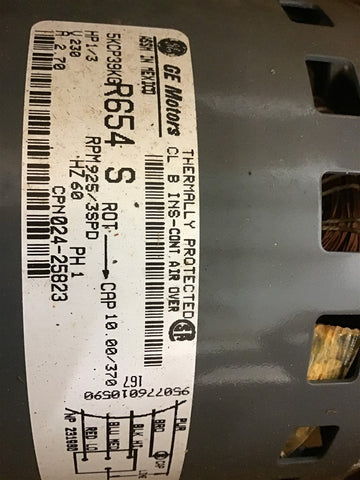 GE 5KCP39KGR654S 1/3 HP 230 volts Single Phase 925 Rpm 3 Spd AC Motor Return Policy Returns accepted within 30 days. Items sold as is cannot be returned, unless description is in error. Buyer pays return freight. Shipping Policy We ship almost all items with 1 business day of cleared payment. We ship USPS and UPS. We can ship on your account. If you will be shipping freight, please be sure to provide all delivery contact information including a phone number. We will need to know if you have a fork lift or dock.
