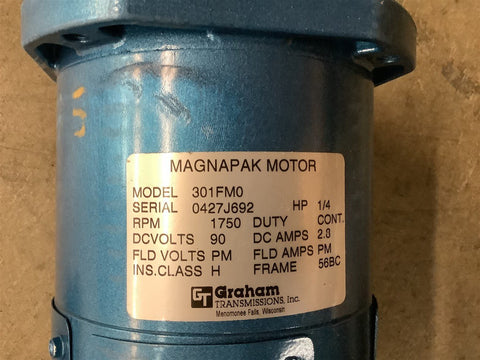 Magnapak 301FM0 DC Motor 90 Volts 2.8 Amps 1/4 HP 1750 Rpm