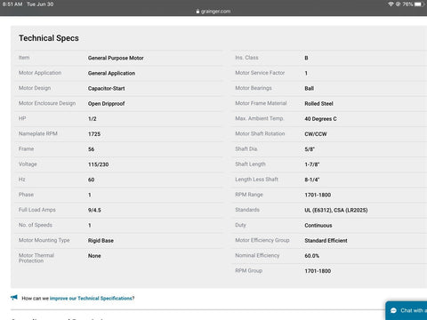 Marathon 56C17D2064 1/2 HP AC Motor 115/230 V Single Phase 1725 Rpm 4P 56 Fr ODP