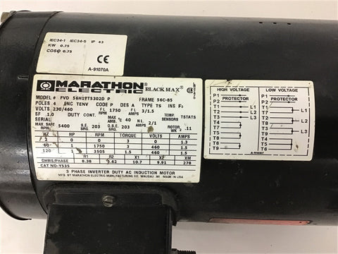 Marathon 56H19T5302D 1 Hp AC Motor 1800 Rpm 4P 230/460 V Black Max 56C-85 Frame