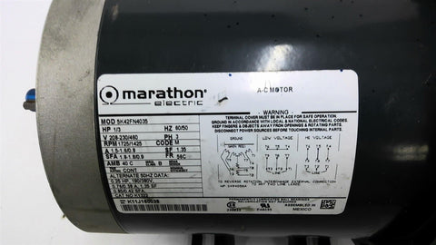 Marathon 5K42FN4035 1/3HP AC Motor 1800 Rpm 4P 3PH 58C 230/460V TEFC 60HZ
