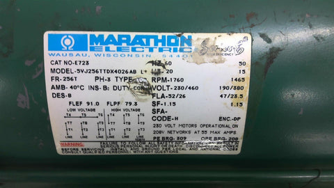 Marathon 5VJ256TTDX4026AB 20hp AC Motor 1800rpm 4p 3ph 256T 230/460V DP 60hz