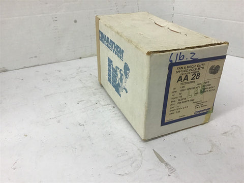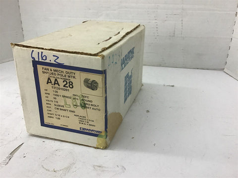 Marathon AA28 1/25 HP AC Motor 115 volts 1550 Rpm 1 Speed Return Policy Returns accepted within 30 days. Items sold as is cannot be returned, unless description is in error. Buyer pays return freight. Shipping Policy We ship almost all items with 1 business day of cleared payment. We ship USPS and UPS. We can ship on your account. If you will be shipping freight, please be sure to provide all delivery contact information including a phone number. We will need to know if you have a fork lift or dock.