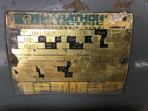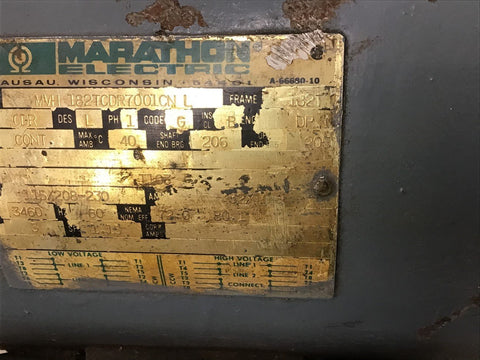 Marathon MVH182TCDR7001CN 3 HP AC Motor 115/208-230 Volts 3600 Rpm 2P 182T Frame Return Policy Returns accepted within 30 days. Items sold as is cannot be returned, unless description is in error. Buyer pays return freight. Shipping Policy We ship almost all items with 1 business day of cleared payment. We ship USPS and UPS. We can ship on your account. If you will be shipping freight, please be sure to provide all delivery contact information including a phone number. We will need to know if you have a fork lift or dock.
