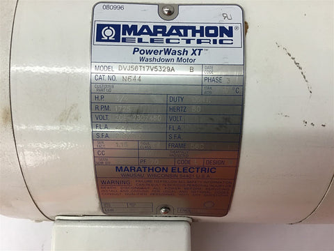 Marathon N644 3/4 HP AC Motor 208-230/460 volts 1800 Rpm 4P 56C Frame Return Policy Returns accepted within 30 days. Items sold as is cannot be returned, unless description is in error. Buyer pays return freight. Shipping Policy We ship almost all items with 1 business day of cleared payment. We ship USPS and UPS. We can ship on your account. If you will be shipping freight, please be sure to provide all delivery contact information including a phone number. We will need to know if you have a fork lift or dock.