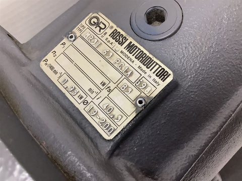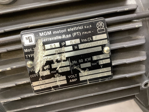 MGM 80B4 Motor 0.90 kW 277/480V 1680 RPM W/ Rossi Motoriduttori Gear Reducer Return Policy Returns accepted within 30 days. Items sold as is cannot be returned, unless description is in error. Buyer pays return freight. Shipping Policy We ship almost all items with 1 business day of cleared payment. We ship USPS and UPS. We can ship on your account. If you will be shipping freight, please be sure to provide all delivery contact information including a phone number. We will need to know if you have a fork lift or dock.