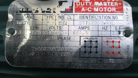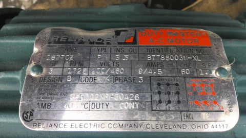 Reliance B77S5003M-XL 3Hp AC Gear Brake Motor 1800Rpm 4P 182TCZ 230/460V 20:1
