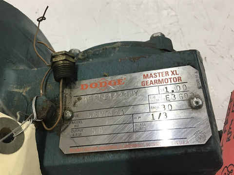 Dodge Master XL Gearmotor MFC114420NY Output RPM 58 1/3 Hp Ratio 30-1 Used---Good Visual Condition---Tested---E-Ok---5/23/CJW----JLM