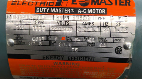 Reliance Electric P56X13871 3/4 HP AC Motor 1800 RPM 4 P 3 PH 56C 230/460 V TE