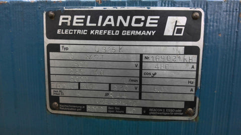 Reliance G315K 220 KW DC Motor 500 Volts 480 Rpm 2000 Rpm