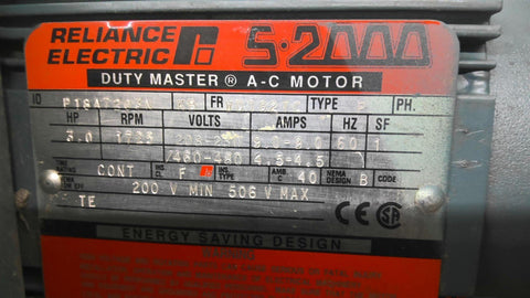 Reliance P18A7303A 3HP AC Brake Motor 1800RPM 4P 3 Phase 182TC 208-230/460-480V
