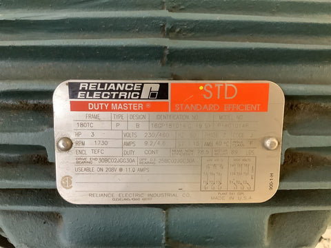 Reliance P18G1014P AC Motor 180TC-FR 3PH 1730RPM 230/460V 60HZ 3HP TEFC Return Policy Returns accepted within 30 days. Items sold as is cannot be returned, unless description is in error. Buyer pays return freight. Shipping Policy We ship almost all items with 1 business day of cleared payment. We ship USPS and UPS. We can ship on your account. If you will be shipping freight, please be sure to provide all delivery contact information including a phone number. We will need to know if you have a fork lift or dock.
