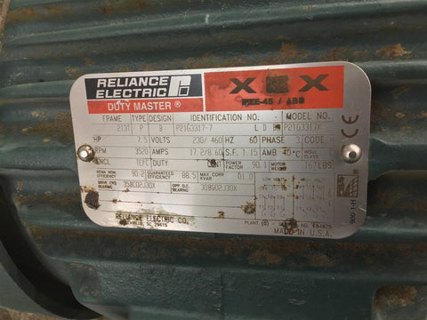Reliance P21G3317-7 7.5 HP AC Motor 230/460 volt 3600 Rpm 2P 213T Frame