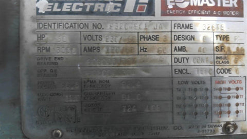 Reliance P264901-JA 50hp AC Motor 3600rpm 2p 3ph 326TS 230/460v TEFC 60hz Return Policy Returns accepted within 30 days. Items sold as is cannot be returned, unless description is in error. Buyer pays return freight. Shipping Policy We ship almost all items with 1 business day of cleared payment. We ship USPS and UPS. We can ship on your account. If you will be shipping freight, please be sure to provide all delivery contact information including a phone number. We will need to know if you have a fork lift or dock.