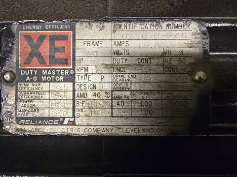 Reliance P36G3326F 60HP AC Motor 1800RPM 4P 3PH 364T 230/460V TEFC 60Hz
