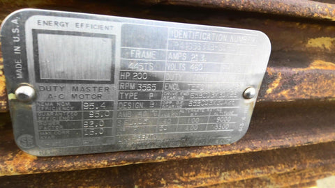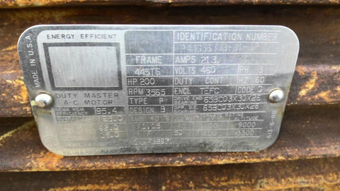 Reliance P44G56333-01-32 200hp AC Motor 3600rpm 2p 3ph 445TS 460v TEFC 60hz