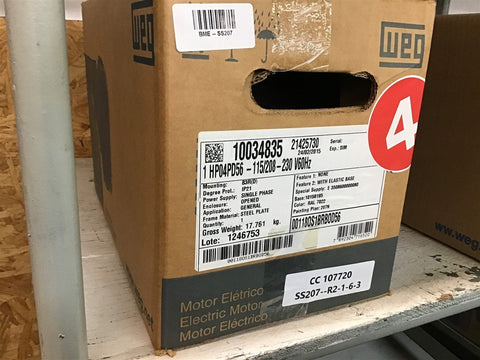 Weg 00118OS1BRBOD56 1 HP AC Motor 115/208-230 V Single Phase 4P 1800 Rpm 56 Fr Return Policy Returns accepted within 30 days. Items sold as is cannot be returned, unless description is in error. Buyer pays return freight. Shipping Policy We ship almost all items with 1 business day of cleared payment. We ship USPS and UPS. We can ship on your account. If you will be shipping freight, please be sure to provide all delivery contact information including a phone number. We will need to know if you have a fork lift or dock.