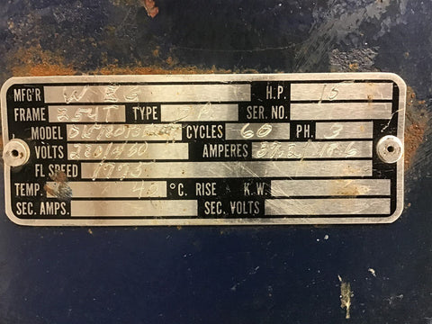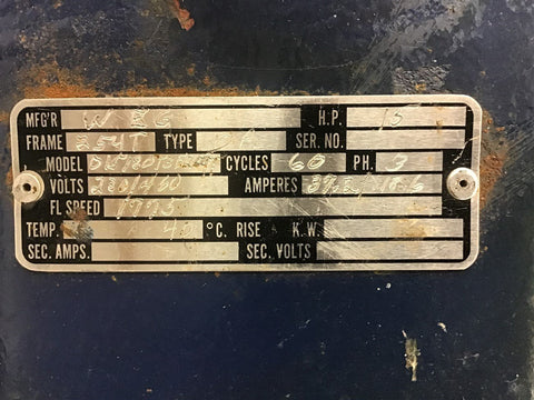 Weg 015180T3E254T 15 HP AC Motor 230/460 volts 1800 Rpm 4P 254T Frame