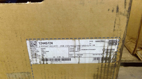 WEG 12445724 Motor 3HP 230/460V 1800RPM 4Pole 182T TEFC 3Phase 60HZ