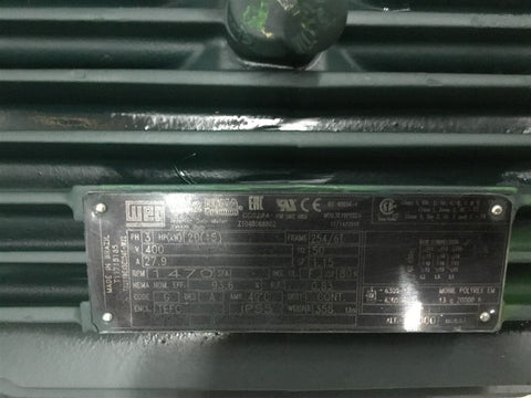 Weg Motor 20 HP 1470 RPM 254/6T Frame 400V TEFC Return Policy Returns accepted within 30 days. Items sold as is cannot be returned, unless description is in error. Buyer pays return freight. Shipping Policy We ship almost all items with 1 business day of cleared payment. We ship USPS and UPS. We can ship on your account. If you will be shipping freight, please be sure to provide all delivery contact information including a phone number. We will need to know if you have a fork lift or dock.