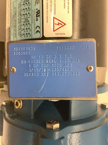 Weg MP 16 SF 2 x 1.5 Pump 1 HP ODP 3500 Rpm 208-230/460 Volt 3Phase Return Policy Returns accepted within 30 days. Items sold as is cannot be returned, unless description is in error. Buyer pays return freight. Shipping Policy We ship almost all items with 1 business day of cleared payment. We ship USPS and UPS. We can ship on your account. If you will be shipping freight, please be sure to provide all delivery contact information including a phone number. We will need to know if you have a fork lift or dock.