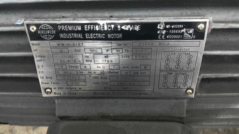Worldwide WW10-215T 10 HP AC Motor 1800 RPM 4 P 3 PH 215T 230/460 V TEFC 60 HZ