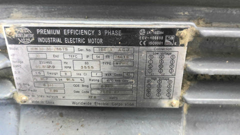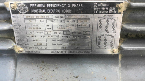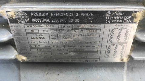 Worldwide WW30-36-286TS 30Hp AC 3600Rpm 2P 3Ph 286TS 230/460V TEFC 60Hz Return Policy Returns accepted within 30 days. Items sold as is cannot be returned, unless description is in error. Buyer pays return freight. Shipping Policy We ship almost all items with 1 business day of cleared payment. We ship USPS and UPS. We can ship on your account. If you will be shipping freight, please be sure to provide all delivery contact information including a phone number. We will need to know if you have a fork lift or dock.