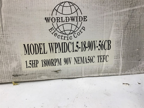 WorldWide WPMDC1.5-18-90V-56CB 1 1/2 HP DC Motor 90 V 18/00 Rpm 56C Fr Return Policy Returns accepted within 30 days. Items sold as is cannot be returned, unless description is in error. Buyer pays return freight. Shipping Policy We ship almost all items with 1 business day of cleared payment. We ship USPS and UPS. We can ship on your account. If you will be shipping freight, please be sure to provide all delivery contact information including a phone number. We will need to know if you have a fork lift or dock.