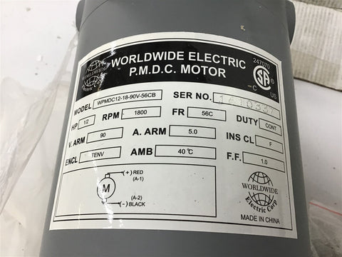 WorldWide WPMDC12-18-90V-56CB 1/2 HP DC Motor 1800 RPM 90V Return Policy Returns accepted within 30 days. Items sold as is cannot be returned, unless description is in error. Buyer pays return freight. Shipping Policy We ship almost all items with 1 business day of cleared payment. We ship USPS and UPS. We can ship on your account. If you will be shipping freight, please be sure to provide all delivery contact information including a phone number. We will need to know if you have a fork lift or dock.