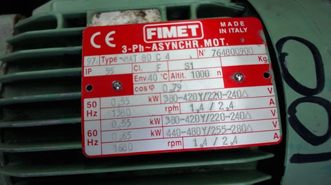 Fimet Gear Motor, R15E, 237:1 Ratio, 0.65 Kw, 440-480 Y / 220-240 Delta Volts,