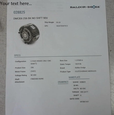 DODGE, DMCBX-256 , 028825, BRAKE ASSEMBLY, 90 VDC, 100LB-FT TORQUE
