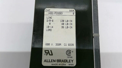 Allen Bradley 1492PD3263 Terminal Block Return Policy Returns accepted within 30 days. Items sold as is cannot be returned, unless description is in error. Buyer pays return freight. Shipping Policy We ship almost all items with 1 business day of cleared payment. We ship USPS and UPS. We can ship on your account. If you will be shipping freight, please be sure to provide all delivery contact information including a phone number. We will need to know if you have a fork lift or dock.
