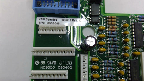 ITW Dynatec 106093 Board Rev. K New Surplus--Not In Box--4/25--JLVCC 162923---SS302-SK-137-B---3.00