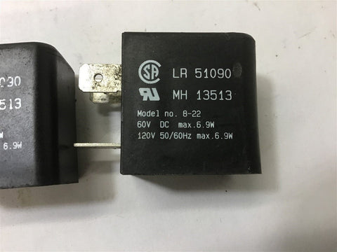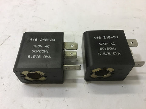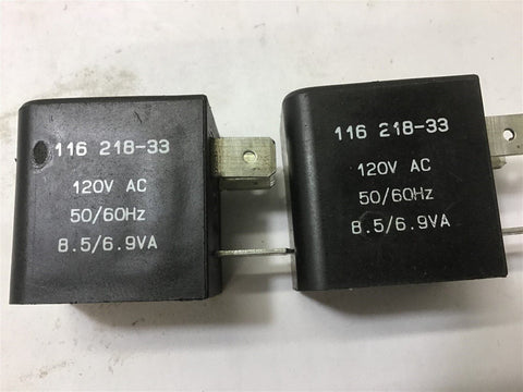 116 218-33 Solenoid Valve Coil 8-22 120 VAC Lot of 2 Return Policy Returns accepted within 30 days. Items sold as is cannot be returned, unless description is in error. Buyer pays return freight. Shipping Policy We ship almost all items with 1 business day of cleared payment. We ship USPS and UPS. We can ship on your account. If you will be shipping freight, please be sure to provide all delivery contact information including a phone number. We will need to know if you have a fork lift or dock.