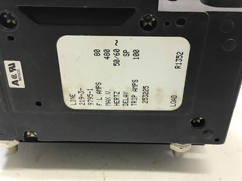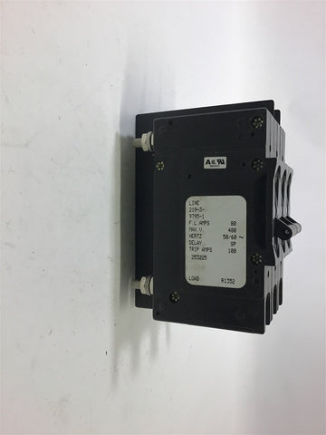 80 Amp Circuit Breaker 480 V 50/60 HZ 3 Pole USED---GOOD VISUAL CONDITION---7/19/LB073397---SS203--G-5-2-1-D-1---3.00
