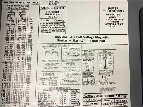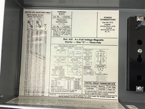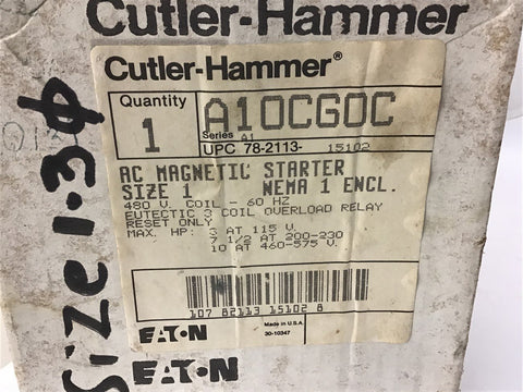 Cutler-Hammer A10CG0C Ac Magnetic Starter Size 1 480 volt coil