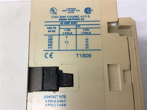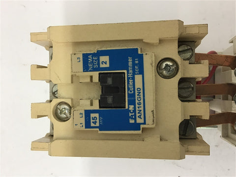 Cutler-Hammer AN16GN0 Nema size 2 45 Amp 460 Volt @ 25 HP 120 Volt Coil Return Policy Returns accepted within 30 days. Items sold as is cannot be returned, unless description is in error. Buyer pays return freight. Shipping Policy We ship almost all items with 1 business day of cleared payment. We ship USPS and UPS. We can ship on your account. If you will be shipping freight, please be sure to provide all delivery contact information including a phone number. We will need to know if you have a fork lift or dock.