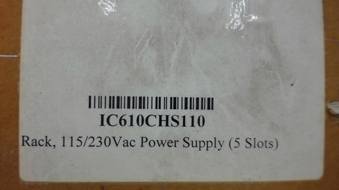 5 Slot Power Supply--Ic610Chs110----115/230 VacNEW IN OPENED FACTORY BOX---10/15/JC018841---S100---G-3-3-1-A------4.00