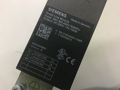 SIEMENS SINAMICS SMART LINE MODULE 6SL3130-6AE21-0AB0 380-480V IN, 600V DC OUT Return Policy Returns accepted within 30 days. Items sold as is cannot be returned, unless description is in error. Buyer pays return freight. Shipping Policy We ship almost all items with 1 business day of cleared payment. We ship USPS and UPS. We can ship on your account. If you will be shipping freight, please be sure to provide all delivery contact information including a phone number. We will need to know if you have a fork lift or dock.