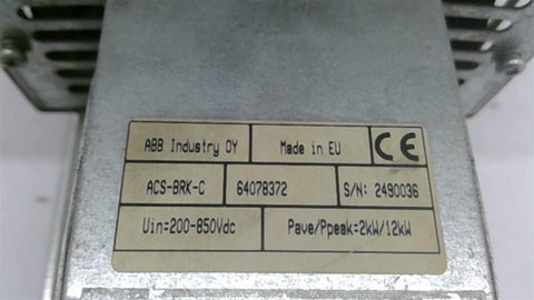 ABB ACS-BRK-C64078372 Drive 12 KW 200-850 Vdc Return Policy Returns accepted within 30 days. Items sold as is cannot be returned, unless description is in error. Buyer pays return freight. Shipping Policy We ship almost all items with 1 business day of cleared payment. We ship USPS and UPS. We can ship on your account. If you will be shipping freight, please be sure to provide all delivery contact information including a phone number. We will need to know if you have a fork lift or dock.