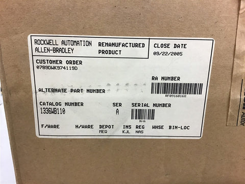 Allen-Bradley 1336WB110 Braking Chopper 750 Vdc Input Return Policy Returns accepted within 30 days. Items sold as is cannot be returned, unless description is in error. Buyer pays return freight. Shipping Policy We ship almost all items with 1 business day of cleared payment. We ship USPS and UPS. We can ship on your account. If you will be shipping freight, please be sure to provide all delivery contact information including a phone number. We will need to know if you have a fork lift or dock.